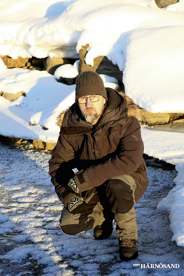 Oskar Norrgrann på spaning efter utter i Härnösand.