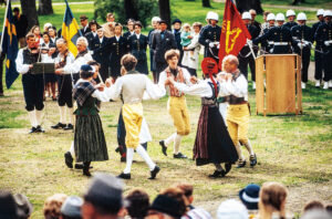 Två av husen, gårdens ursprungliga portlider och stall brann ner. Dessa byggnader har nu ersatts av stall och portlider som stod där Scenen idag står och som var början till en gård från södra Ångermanland.