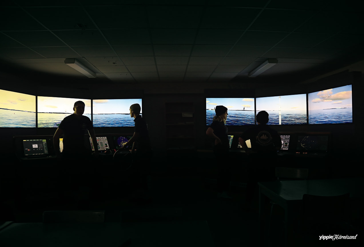På Sjöfartsprogrammet på Härnösands gymnasium kan eleverna numera köra båt även på land. Två fartygssimulatorer ger en mycket verklighetstrogen bild av hur det är att stå och navigera på bryggan.