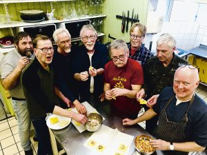 – Vi försöker ses en gång i månaden och håller till på Villa Fridhem. Först började vi med Medelhavet runt, för att sen fortsätta Afrika runt, och nu senast längs ostkusten i Asien. Det finns så mycket rolig mat överallt. Vi lagar sex, sju olika rätter varje gång; förrätter, varmrätter och efterrätter. Till maten smakar vi olika drycker från det aktuella landet. Vi avslutar varje världsdel med examen när alla får bjuda in en gäst och visa upp sina nyvunna kunskaper. Då lagar vi en avsmakningsmiddag med ett urval av rätterna som vi lagat.