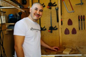 – Brickorna är bara en hobby, säger Elisabeth Kalén och visar fram serveringsbrickor och skärbrädor i olika mönster.